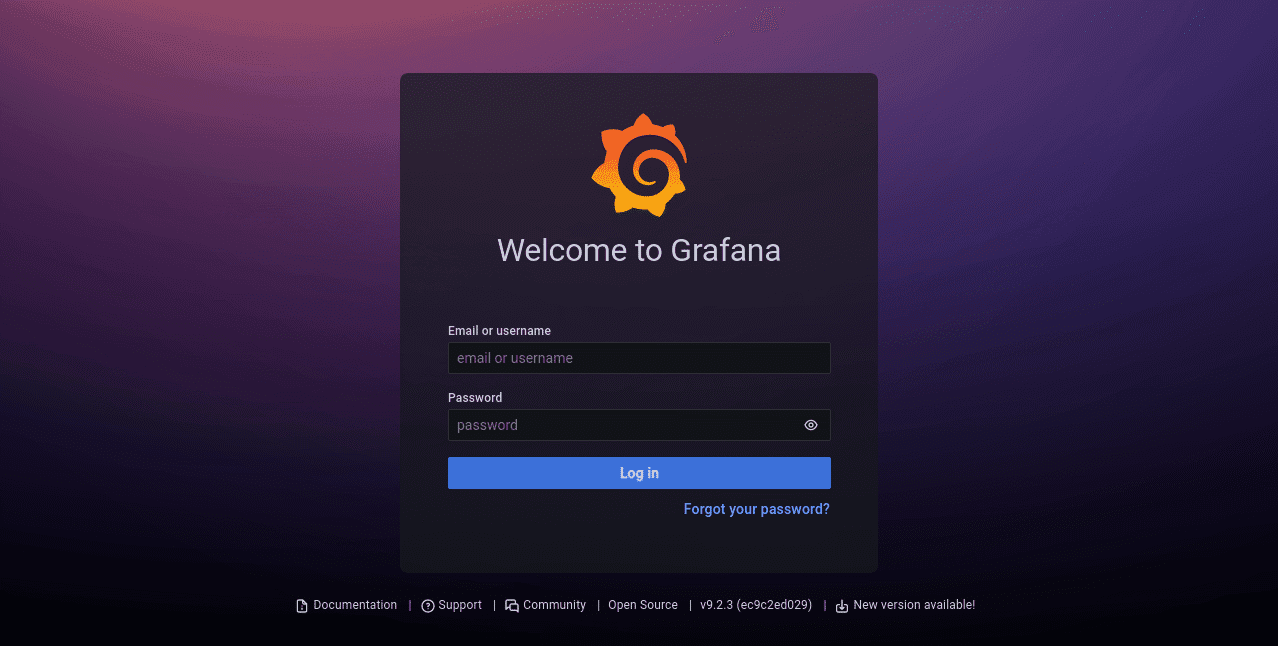 Forwarding from [::1]:8080 -> 3000Next visit http://localhost:8080 in your browser. You’ll see the Grafana login page. The default user account is admin with a password of prom-operator.